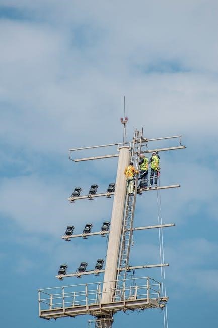 Safety training programs for height-related work should cover essential topics to ensure comprehensive understanding. These include hazard identification, risk assessment methodologies, and the proper use of fall protection equipment. Participants should learn about safety standards, regulations, and industry best practices. Training also emphasizes emergency response plans, rescue techniques, and first aid for fall-related injuries. Understanding the hierarchy of controls, from elimination to PPE, is vital. Practical demonstrations and hands-on exercises are included to reinforce theoretical knowledge. Additionally, programs address safe work practices, equipment inspection, and maintenance. Regular updates on new technologies and procedures ensure workers stay informed. These topics collectively aim to enhance safety awareness and competence, reducing incidents and ensuring compliance with legal requirements.
