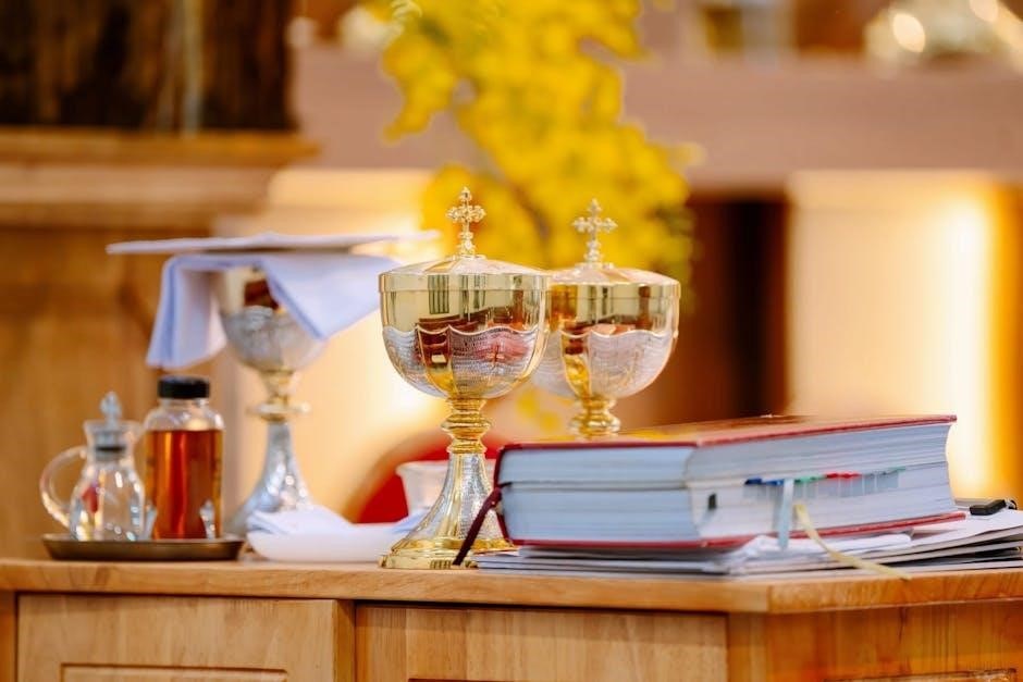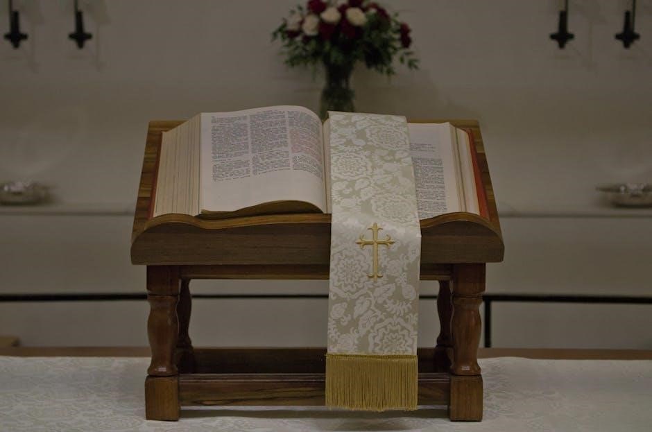 The Roman Missal serves as the central text for the Catholic Mass, guiding the celebration of the Eucharist․ It contains the prescribed prayers, readings, and rituals for each liturgical season and feast day․ Its uniformity ensures consistency in worship across the global Catholic Church, fostering unity in faith and practice․