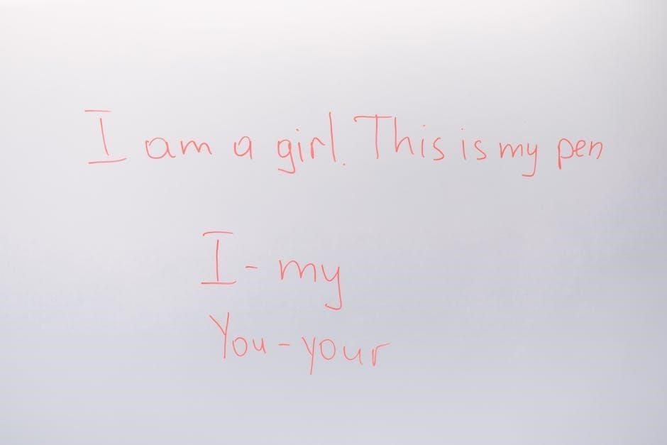 Mastering basic grammar structures is essential for beginners. Start with simple verb tenses, nouns, and question formation. Introduce present tense and sentence structure gradually. Use examples like “What’s your name?” to illustrate questions. Provide clear explanations and exercises to reinforce concepts. Worksheets and PDF materials often include practice drills for sentence building and verb usage. Focus on foundational rules to build confidence and accuracy in communication. This step-by-step approach ensures learners grasp the fundamentals before progressing to more complex grammar.